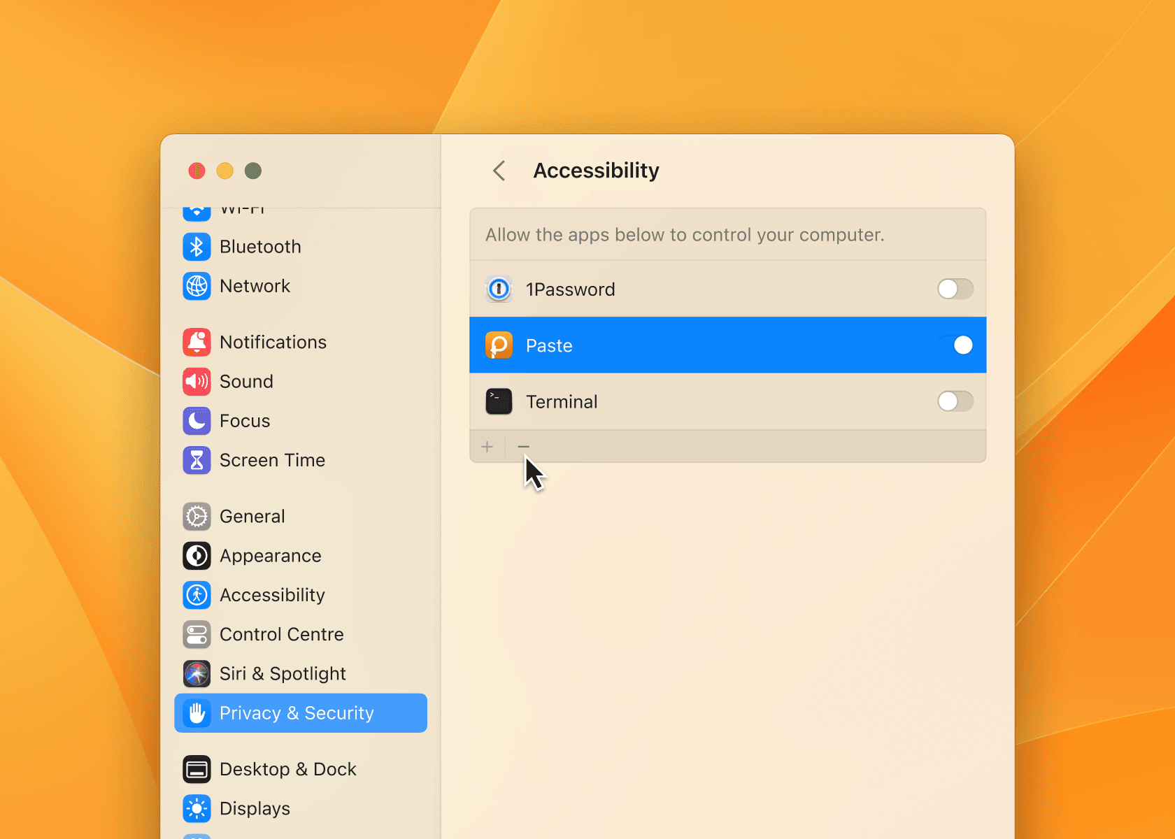 Sometimes (e. g., after an operating system update), the access may get taken away unintentionally, and you’ll need to re-enable Paste to access the accessibility features manually: