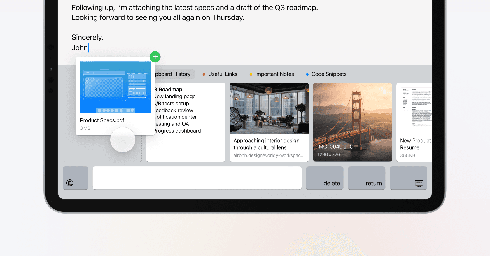 Paste Keyboard enhances the default iPadOS keyboard and brings Paste’s desktop experience to your iPad.