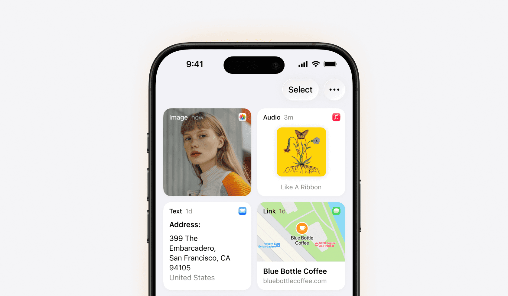 Items you save on your iPhone are securely synced using your private iCloud and made available on your other devices, so you can copy something on one device and reuse it on another. Your data stays private and protected, stored in your own iCloud account.
