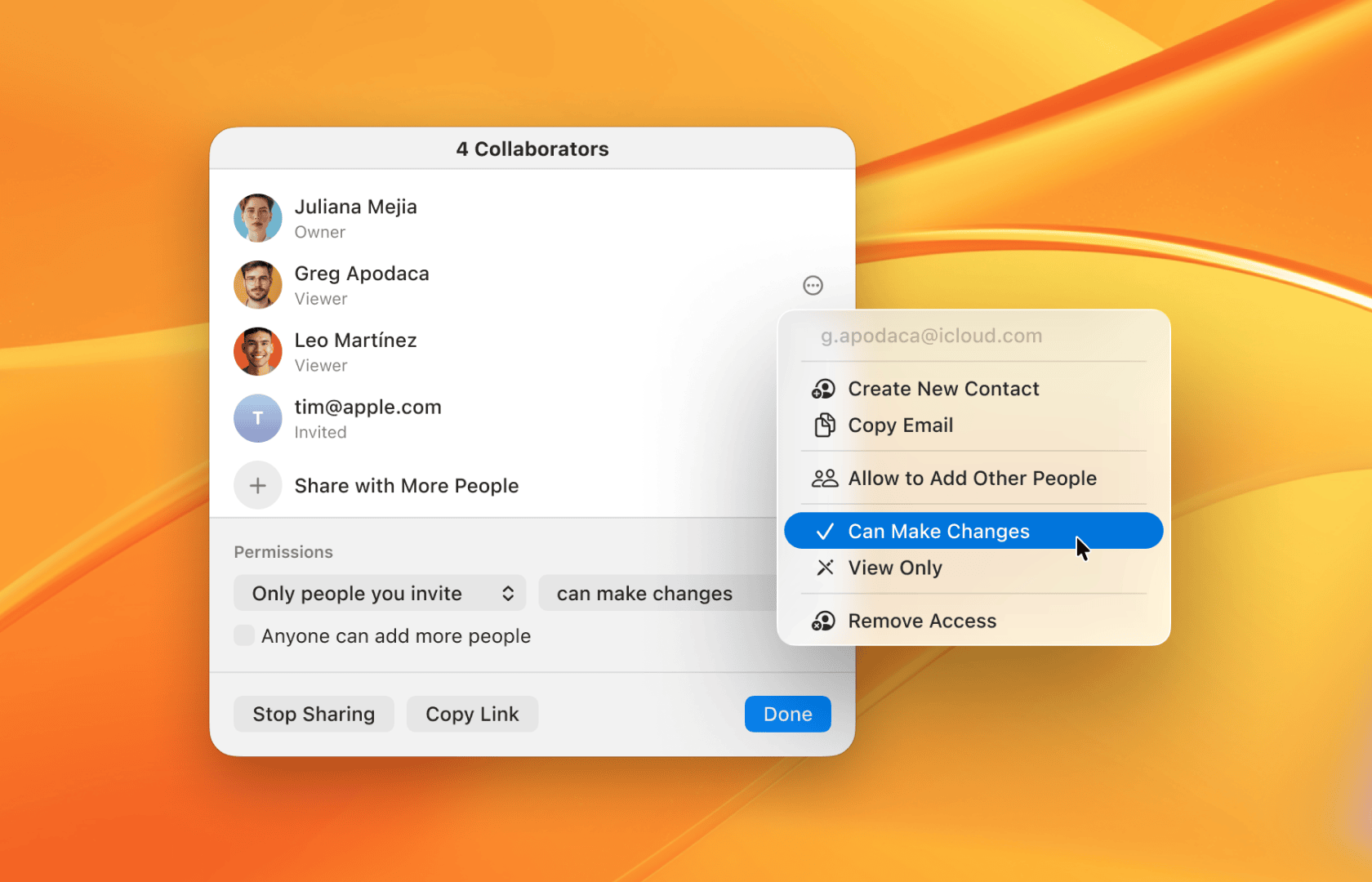 Once a Pinboard is shared, you can easily manage participants and their permissions at any time.